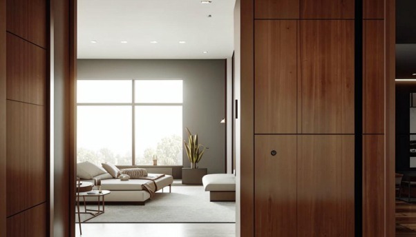 Кроме того, финишная отделка двери должна быть безупречной. Учитывая, что скрытая дверь интегрируется в пространство как элемент стены, любые изъяны в отделке могут повлиять на общий вид интерьера. Лучше всего, если отделка двери будет выполняться с применением материалов, таких как гипсокартон, дерево, стекло или акрил — они обеспечивают гладкость и безупречность внешнего вида.